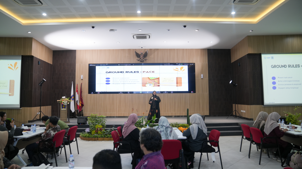 Sesi Capacity Building kali ini menghadirkan narasumber istimewa, Ibu Fauziah Zulfitri, SPsi., M.M., PCC, yang merupakan Founder Insight Indonesia. Insight Indonesia sendiri dikenal melalui layanan Training – Coaching – Consulting. Sebagai seorang Professional Certified Coach (PCC), Ibu Fauziah membagikan kerangka kerja produktivitas yang komprehensif, yaitu FLOW – FOCUS – FINISH, yang bertujuan untuk membantu para profesional mencapai hasil kerja optimal.