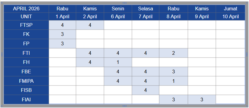 Rapat Tinjauan Manajemen Sistem Penjaminan Mutu Universitas dengan pokok bahasan hasil Monev Pembelajaran 2026 dilaksanakan pada: